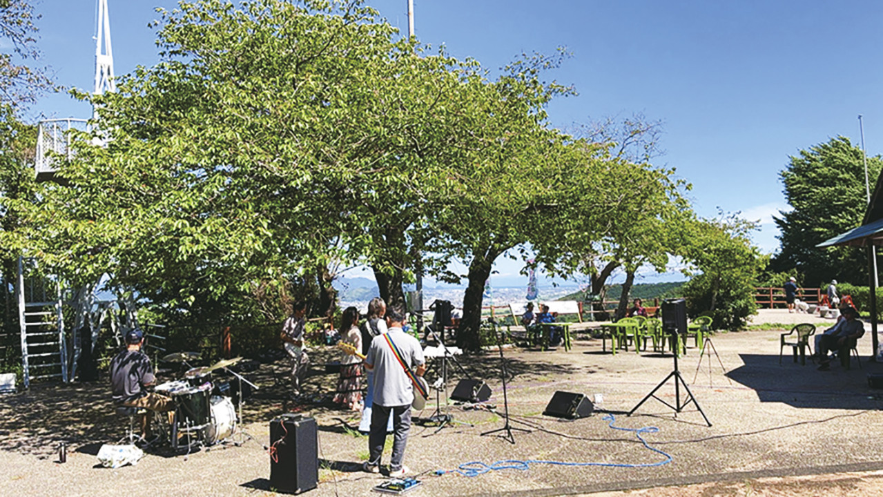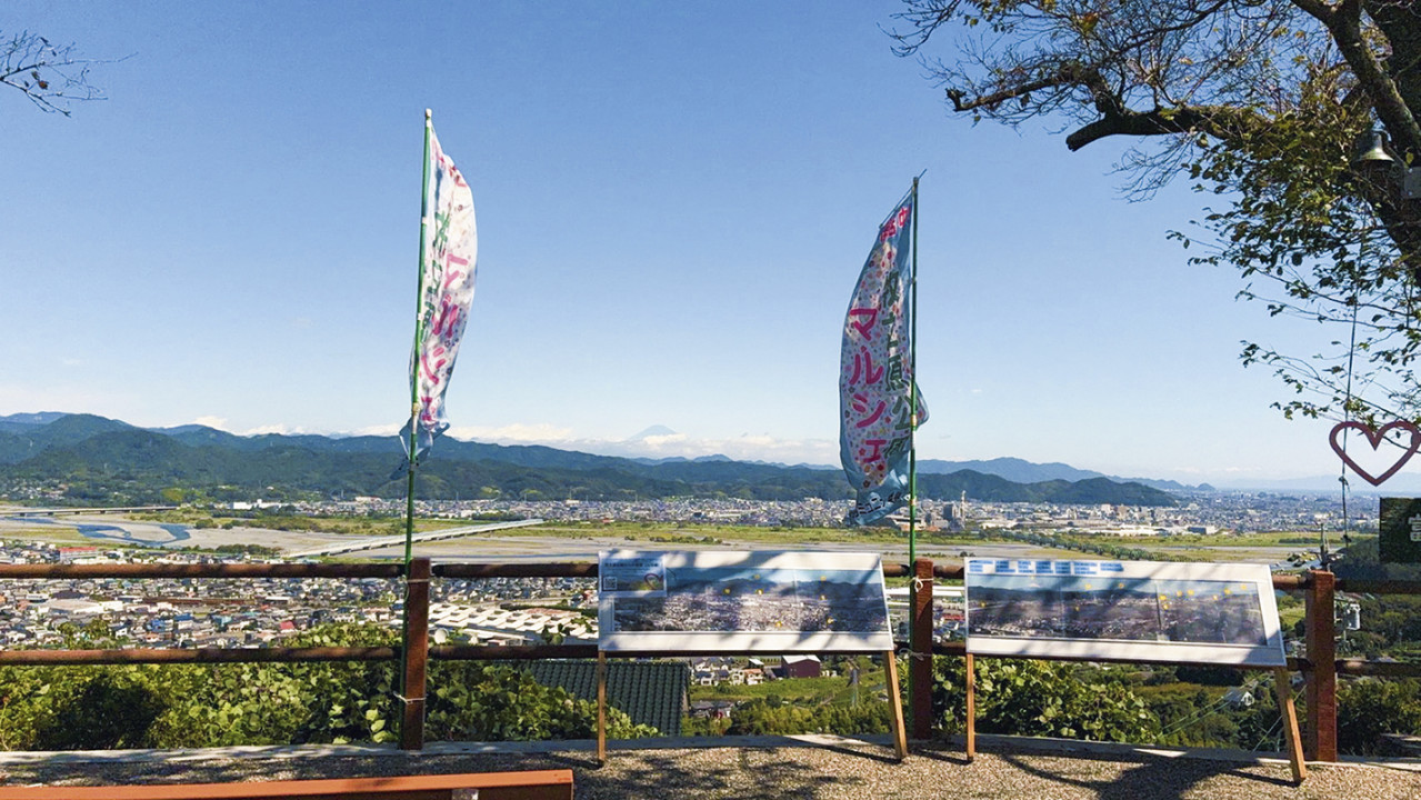 公園の高台には、茶どころ金谷のシンボルである茶祖・栄西禅師像が、眼下に広がる街並みを見守っています。春から秋にかけては、金谷コミュニティ委員会を中心に「牧之原公園マルシェ」が開催され、多くの人で賑わいを見せます。