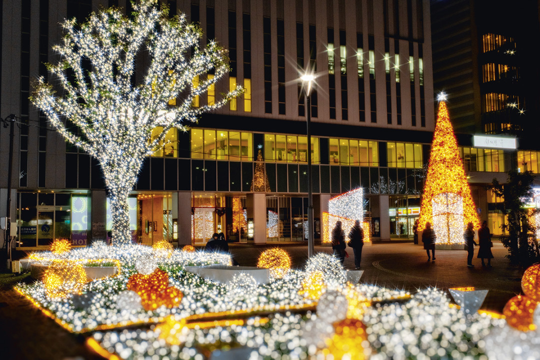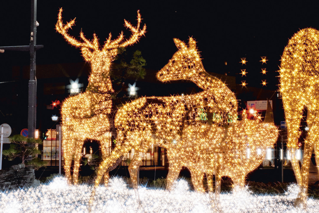 駅南エリアでは、暖かみのある色合いのオーナメントで飾られた巨大ツリーや、可愛らしい動物のオブジェが登場し、洗練された温もりに満ちた街並みを演出します。