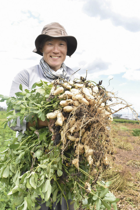 島田市井口島田市でジャンボ落花生を1.2ヘクタール栽培している岩本剛久さん。落花生のほかにもレタスやシソ、トウモロコシ、米などさまざまな作物を生産しています。学生時代にアメリカへ留学し、そのまま現地で就職した岩本さんですが、36歳のときに独立を考え、実家に畑があったこともあり、日本に戻って農業を始めました。