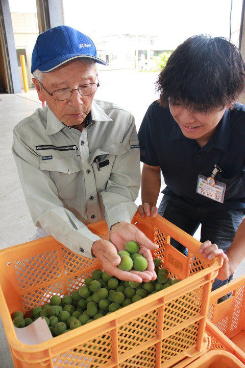 同部会員は23人が所属し、約3㌶の梅園で大梅のほか、小梅や南高なども栽培しています。鮮度と品質の高さから市場での評価も高く、県内および関東圏の市場へ6月上旬までに約8㌧の出荷を予定しています。